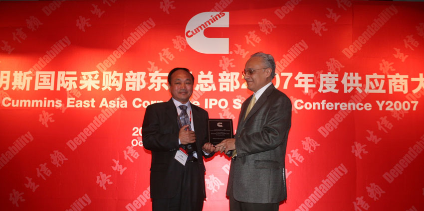 2014雷沃重工 質(zhì)量貢獻獎 領(lǐng)獎?wù)掌?span id="__kindeditor_bookmark_end_19__"> 卡特彼勒配套生產(chǎn)線頒獎合影 玉柴動力頒獎 2007年10月,美國康明斯公司頒發(fā)優(yōu)秀供應商獎現(xiàn)場