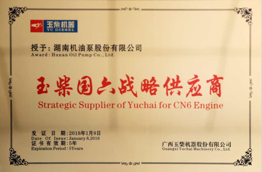 湖南機(jī)油泵股份有限公司作為玉柴國(guó)六發(fā)動(dòng)機(jī)的戰(zhàn)略供應(yīng)商之一和2017年度優(yōu)秀供應(yīng)商,同時(shí)也作為中國(guó)內(nèi)燃機(jī)工業(yè)協(xié)會(huì)確認(rèn)的“中國(guó)內(nèi)燃機(jī)工業(yè)排頭兵企業(yè)”。湘油泵隨著玉柴機(jī)器的發(fā)展做大做強(qiáng),在技術(shù)上不斷創(chuàng)新,每年設(shè)計(jì)開發(fā)新產(chǎn)品達(dá)100多種,申請(qǐng)國(guó)家專利、發(fā)明專利授權(quán)200多項(xiàng),建立了國(guó)內(nèi)一流的試驗(yàn)中心、國(guó)家認(rèn)定企業(yè)技術(shù)中心,二十多項(xiàng)科研成果、新產(chǎn)品獲得國(guó)家、省、市科技進(jìn)步獎(jiǎng)。